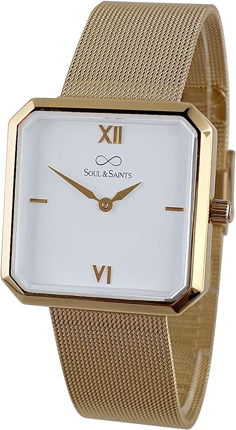 Premium Damenuhr Edelstahl elegante Armbanduhr quadratisch rechteckig Damen Uhr eckig mesh Armband Edelstahl Swiss Uhrwerk Saphire Glas kratzfest 3m 3ATM Wasserfest - Mary